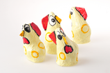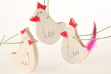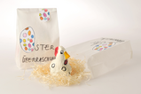 Die Tüte enthält ein kleines Papiermachee Huhn und Holzwolle. Lassen sie sich überraschen, welche Farbe es hat.